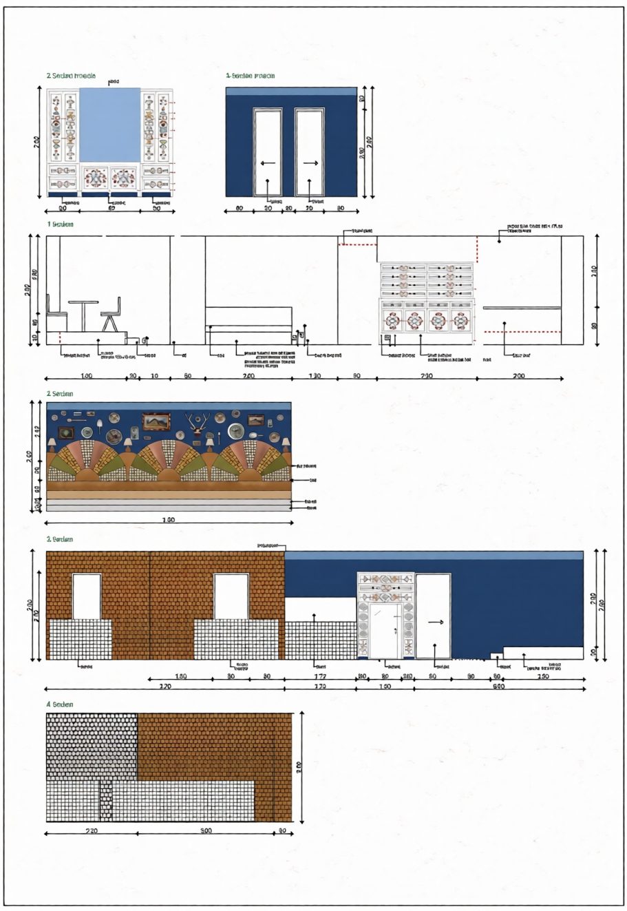 - Geflieste Wandflächen in stark beanspruchten Bereichen für einfache Reinigung und ein modernes Erscheinungsbild.