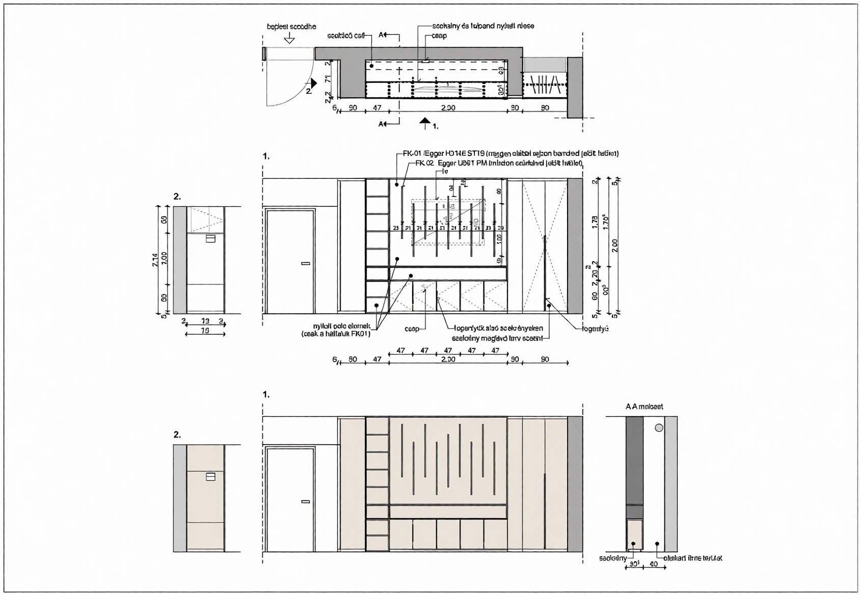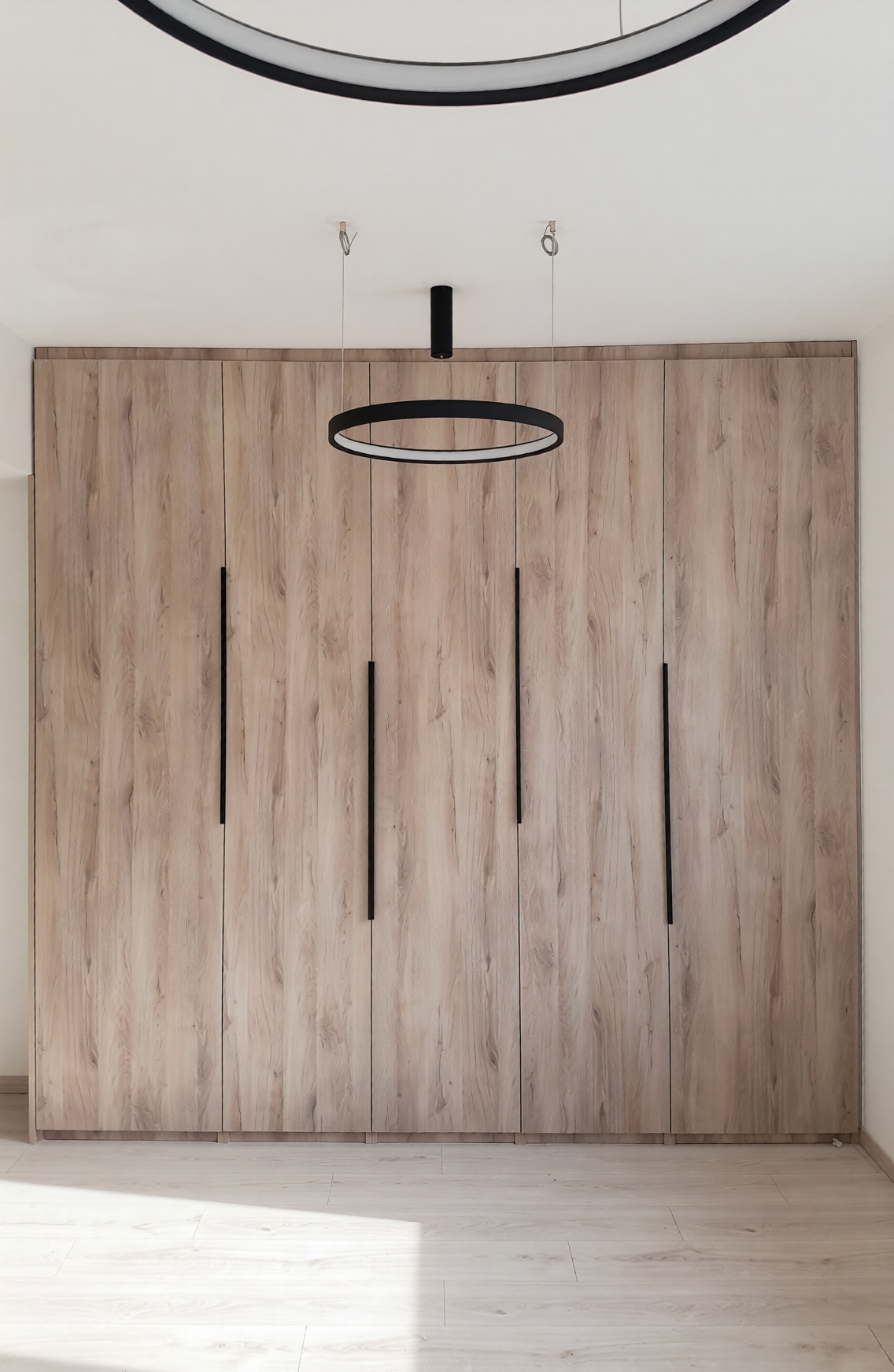 Die maßgefertigten Einbaumöbel folgen einer einheitlichen Material- und Farbgestaltung und integrieren verdeckte Stauraumlösungen sowie klare Fronten – für Ordnung und Übersichtlichkeit.