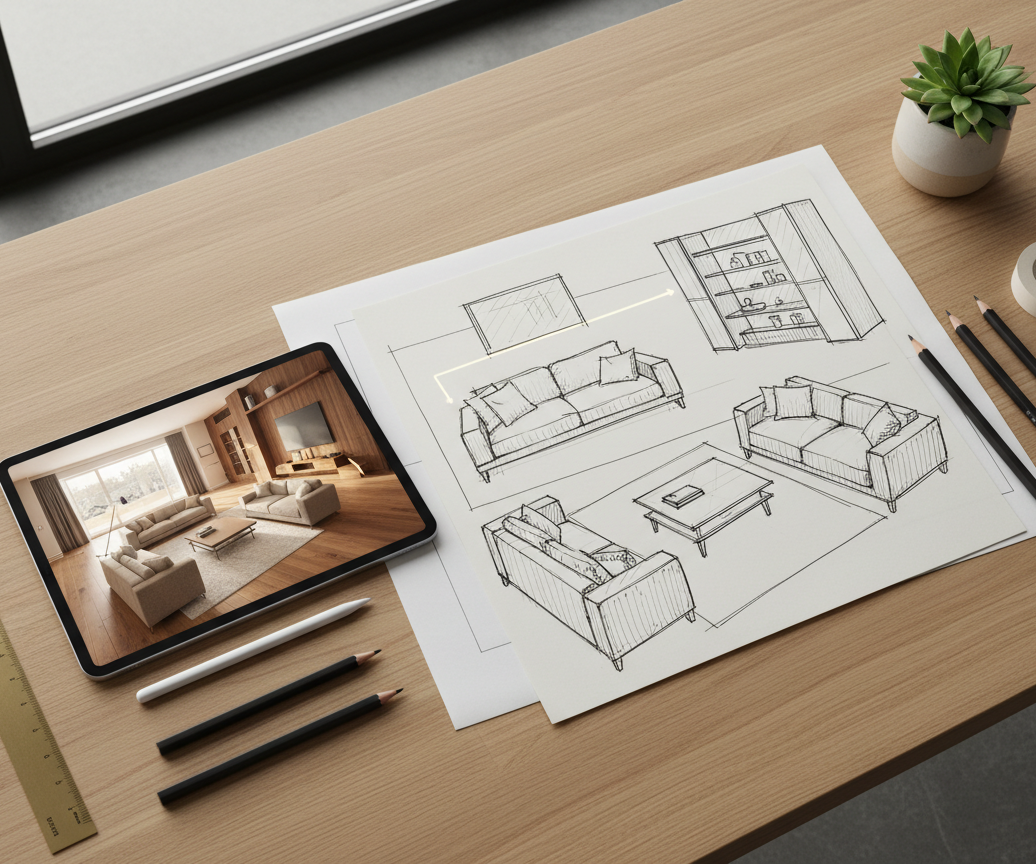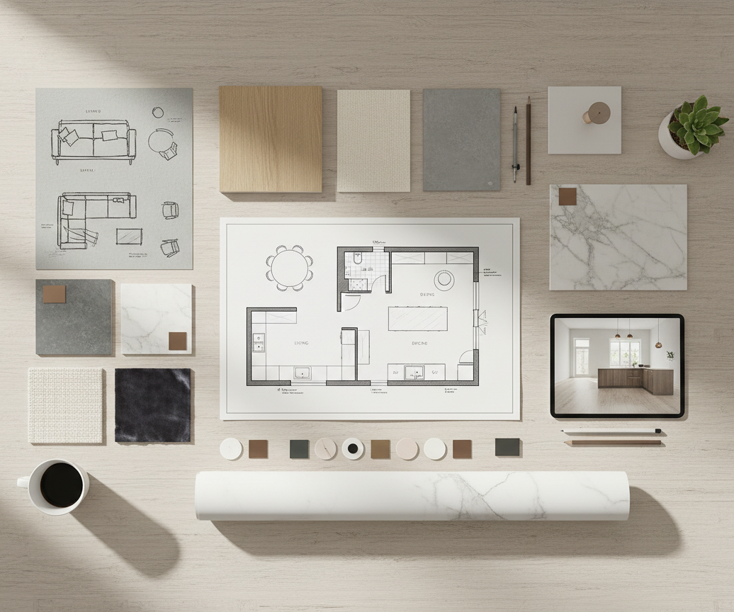 Umfassendes Interior Design Konzept, von der Vor-Ort-Aufnahme bis zur detaillierten Ausarbeitung.